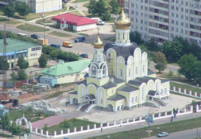 «Меня попросили сделать проект по образу и подобию церквей допетровской эпохи, — вспоминает Михаил Михайлович. — Но это не точная копия какого-то храма, а стилизация, синтез, индивидуальное решение». Изначально постановили, что построят храм в честь Рождества Христова. Значит, по канонам, он должен быть одноглавым и покрашен в золотистый или белый цвет. Были большие проблемы с выбором места, ведь по тем же канонам храм строго ориентируют по сторонам света, по линии «запад — восток». Сначала его хотели строить на поле рядом с Домом ученых, но тогда получалось, что главный вход будет со стороны леса — неудобно. Рассматривался и вариант размещения на Аксеновской площади, там, где сейчас рынок. Но ставить храм рядом с большим магазином не захотели в епархии. Короче, выбрали то место, на котором он и стоит, пожертвовав сквером, который там разбили в 80-е годы. «Мне хотелось, чтобы храм был повыше, метров пятьдесят, чтобы он был выше 12-этажных домов, которые стоят рядом, — говорит Михаил Белоусов. — Но недостаток денег на строительство заставил делать его ниже. Тем не менее, считаю, что храм органично вписался в городскую среду».