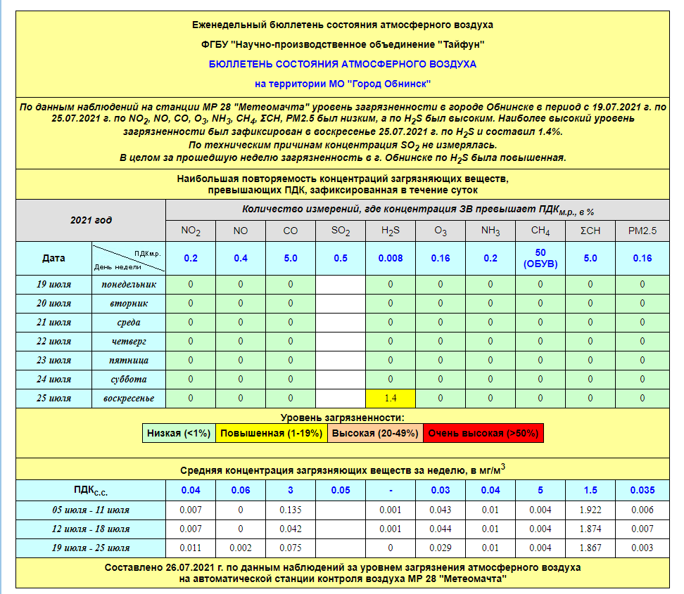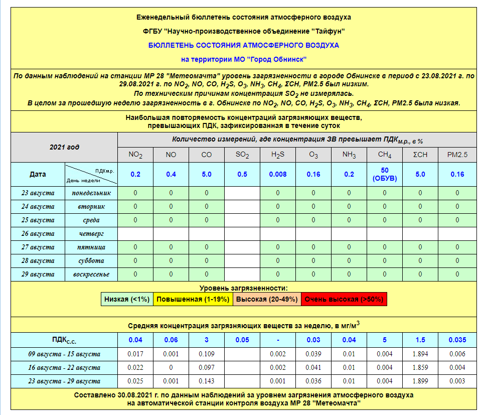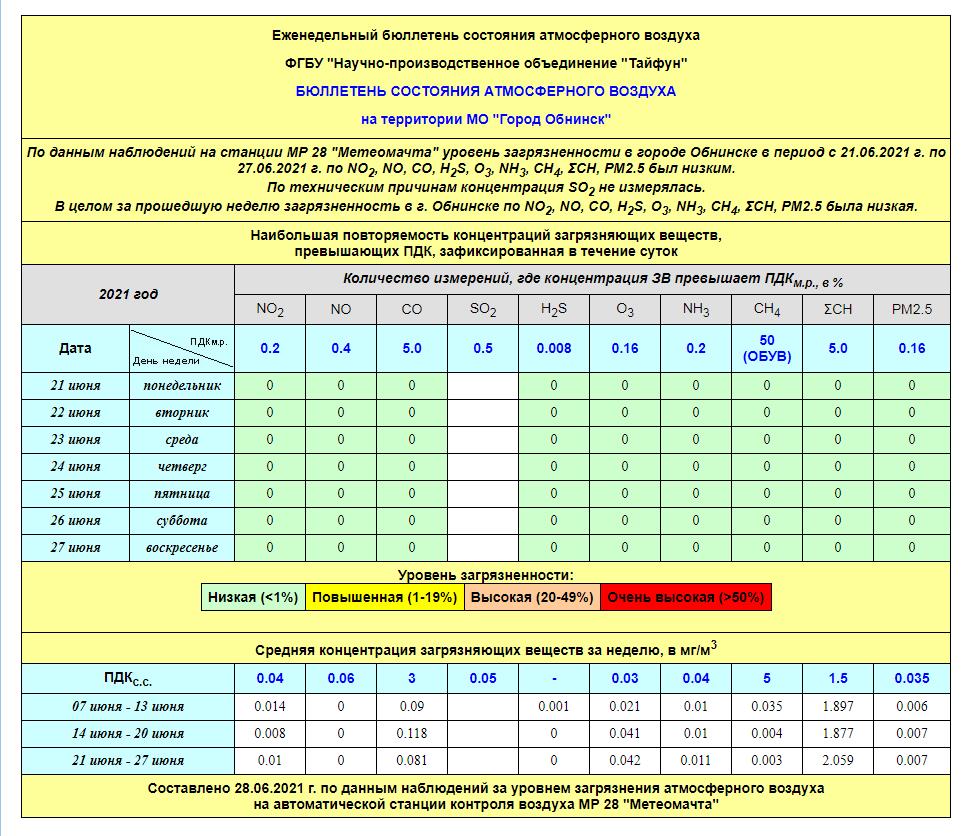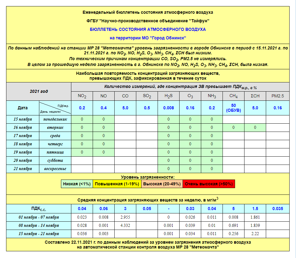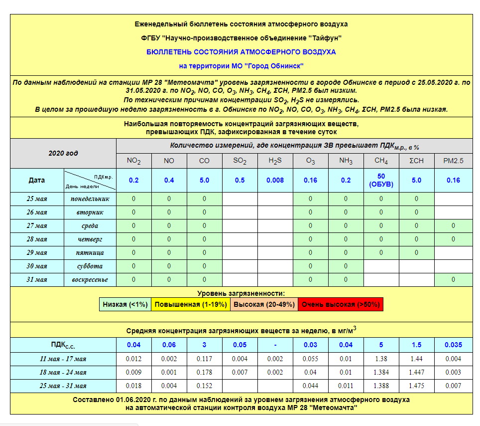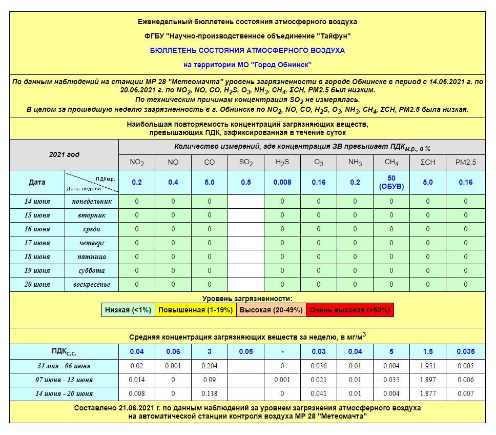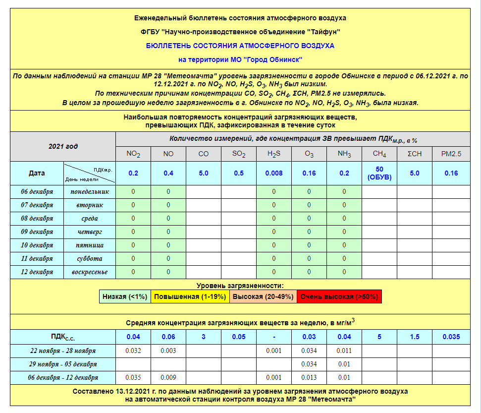 Архив данных мониторинга состояния атмосферного воздуха за 2020-2021 годы