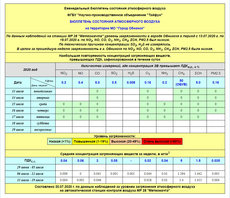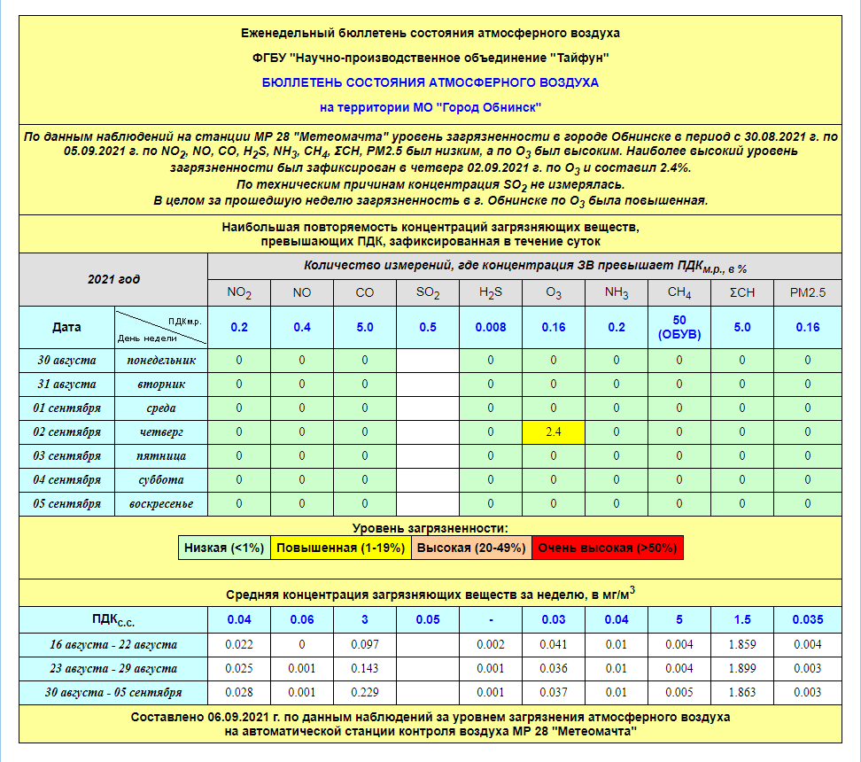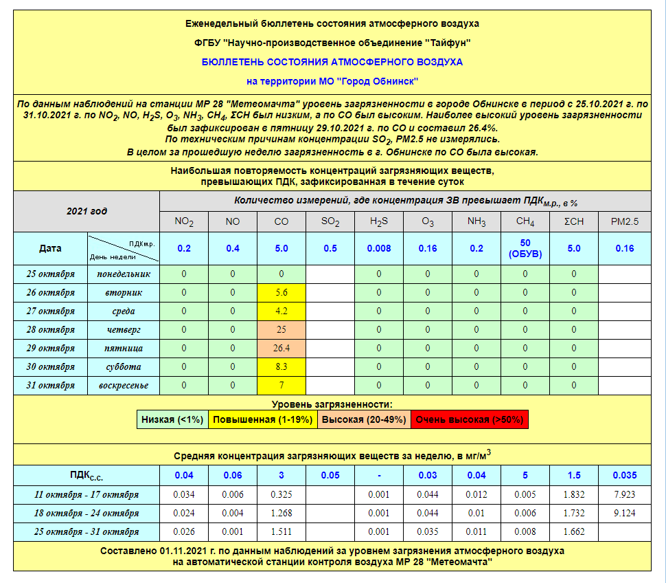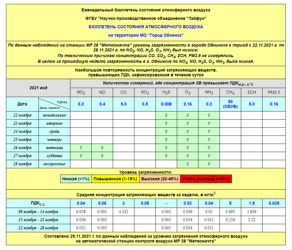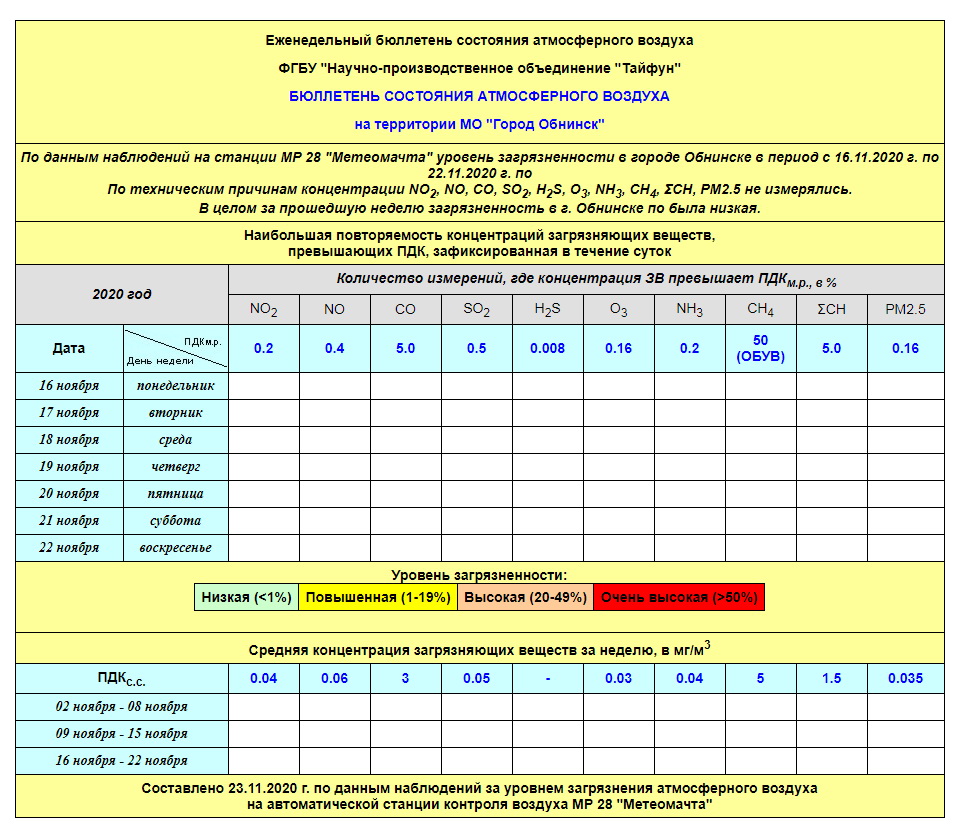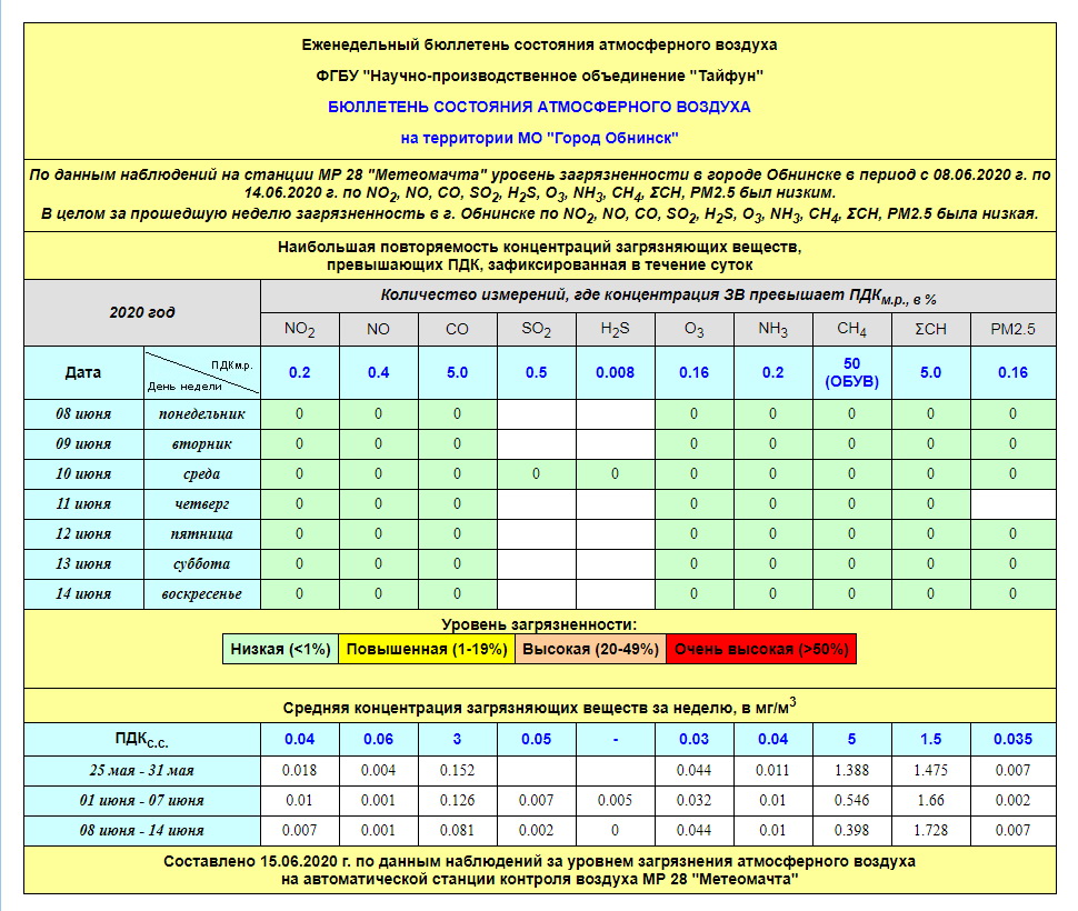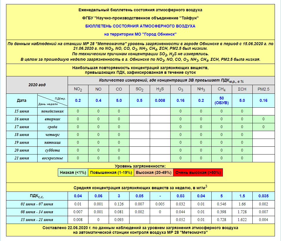 Архив данных мониторинга состояния атмосферного воздуха за 2020-2021 годы