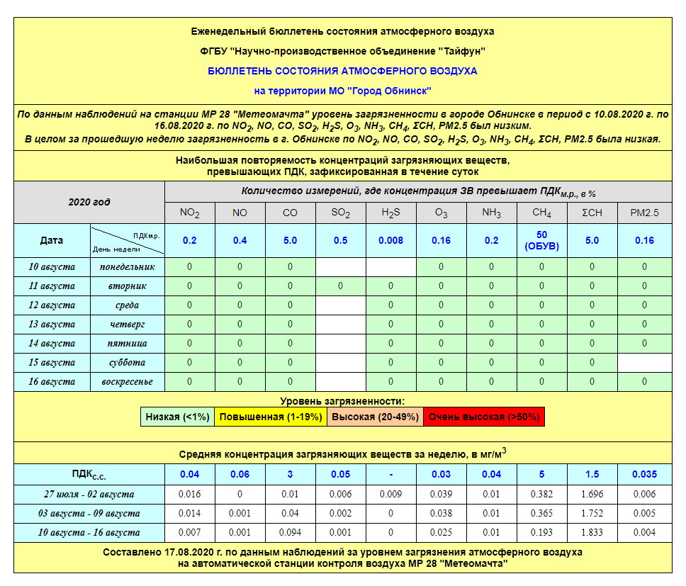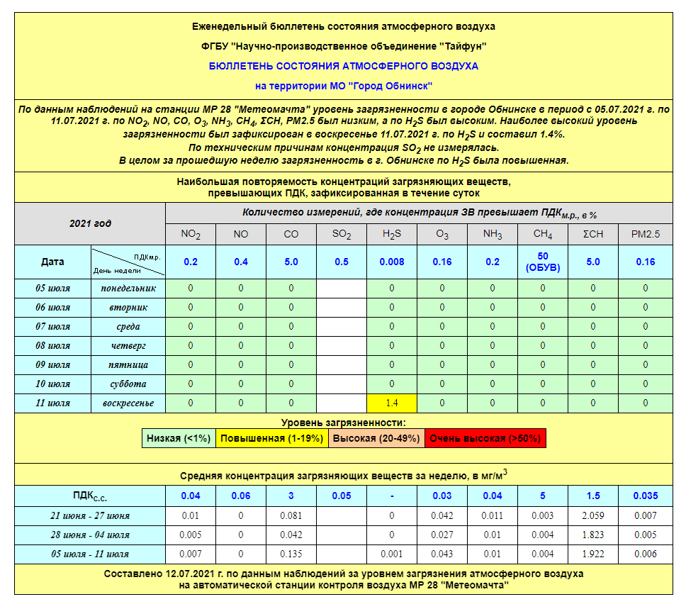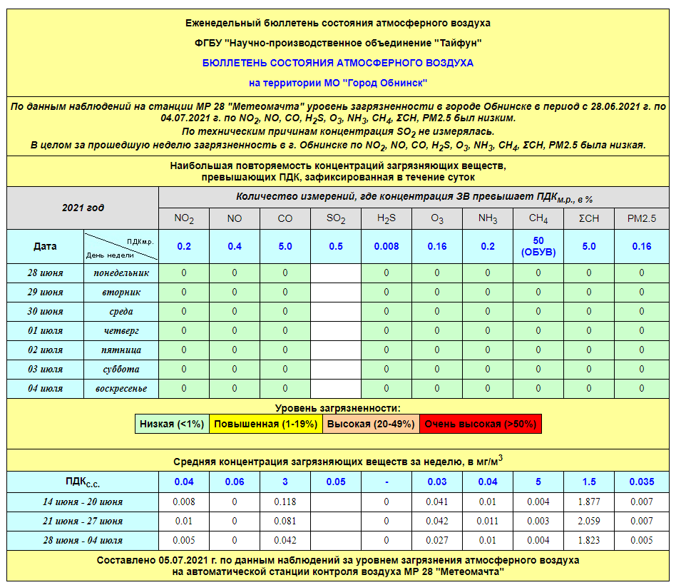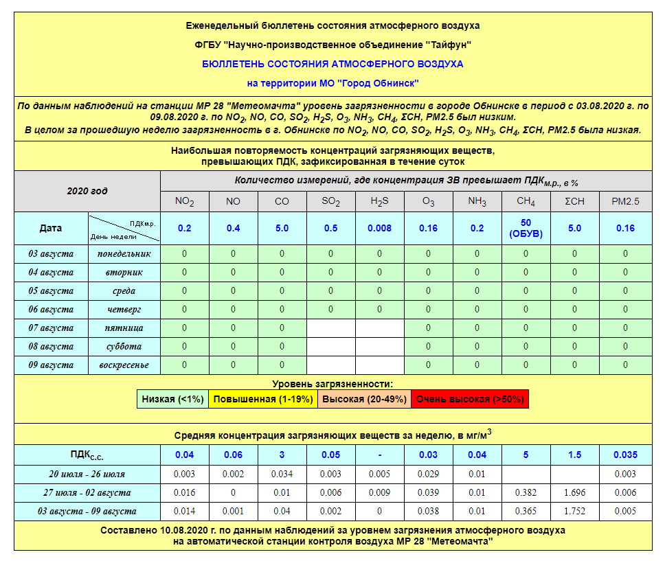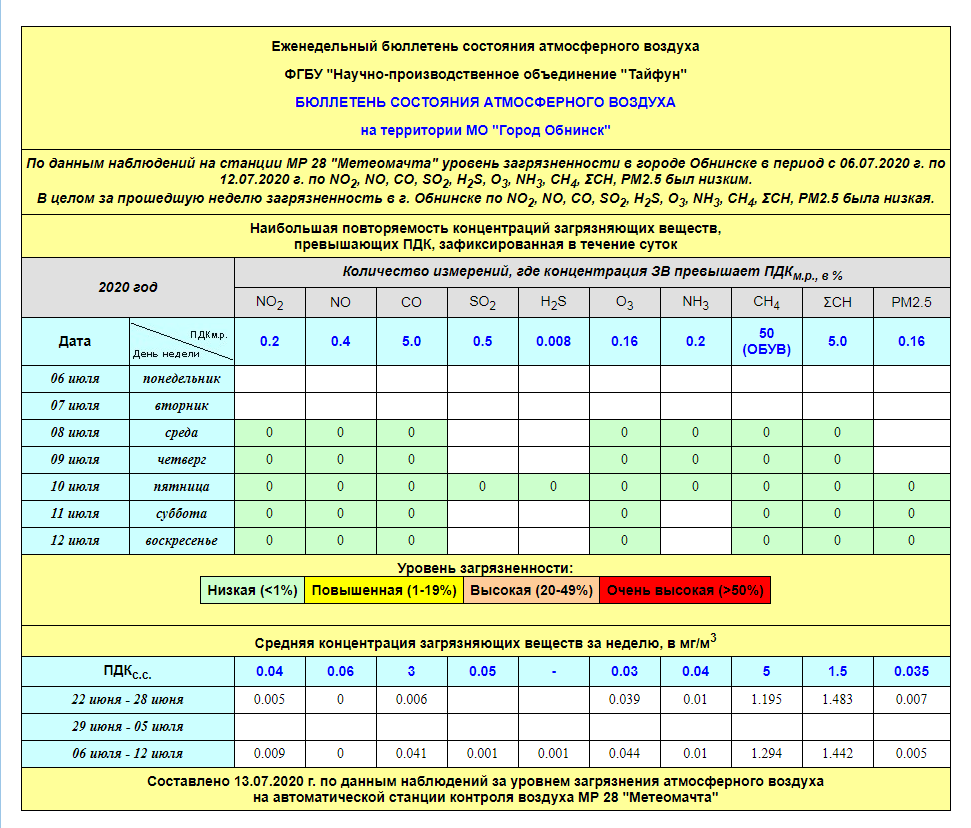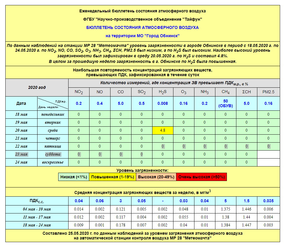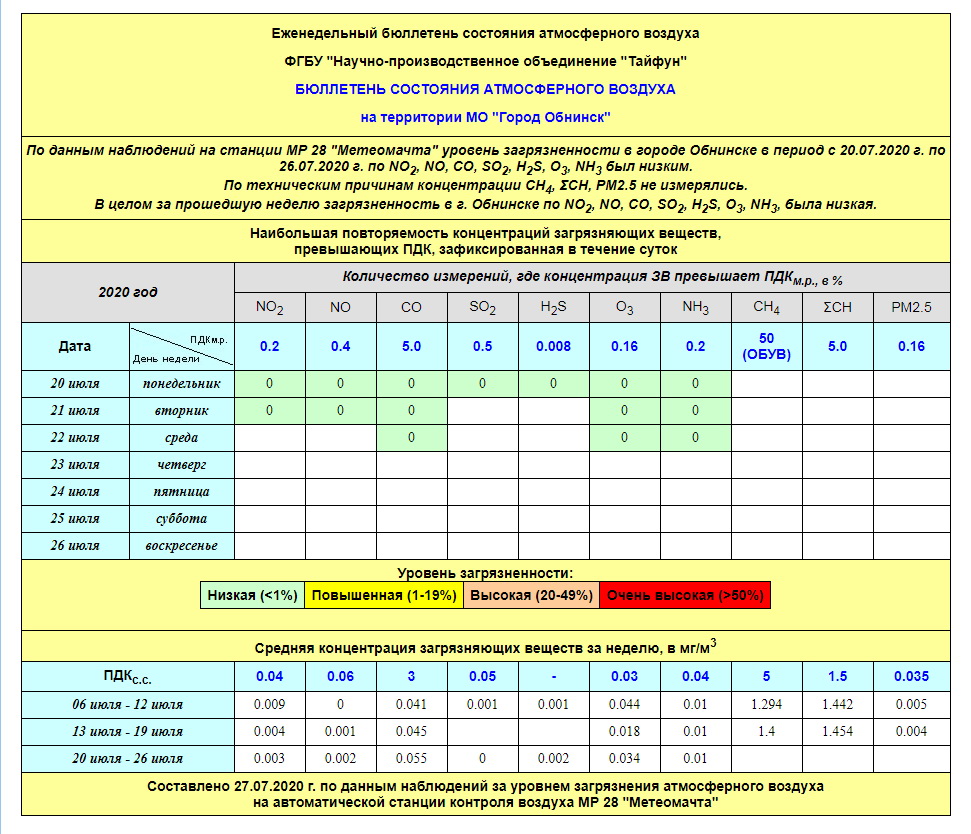 Архив данных мониторинга состояния атмосферного воздуха за 2020-2021 годы