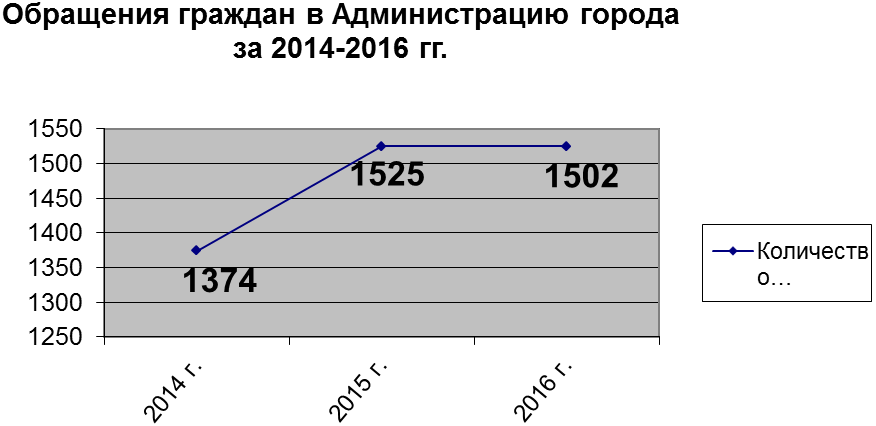 В 2016 году в Администрацию города поступило 1502 обращения, что на 23 (или 1,5%) обращения меньше, чем за аналогичный период 2015 года. Рассмотрено 1427 обращений, из них: решено положительно 565 (или 39,6%) просьб, в т.ч. меры приняты –375 (или 66,4%) , по 816 (или 57,2%) вопросам даны разъяснения, в 46 (или 3,2%) случаях отказано. 75 обращений (или 5 %) находится в стадии рассмотрения, из них 2 – с продленным сроком рассмотрения.