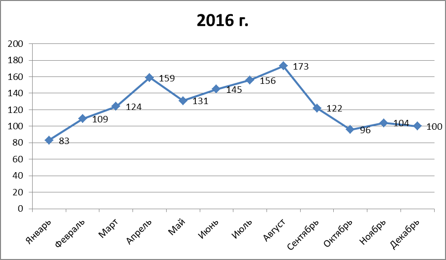 При сравнении статистических показателей с аналогичными отчетными периодами последних трех лет можно отметить, что показатель числа обращений за 2016 год незначительно уменьшился по сравнению с 2015 годом (Диаграмма 2).
