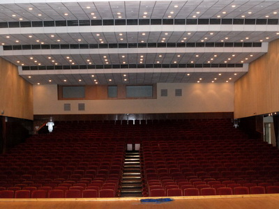 Зрительный зал на 740 мест, расположенный амфитеатром и предназначен для проведения массовых мероприятий, собраний, концертов, театральных представлений, каминный зал, помещение служебного входа, группа помещений, обслуживающих сцену.