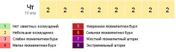 10 апреля значительных возмущений геомагнитного поля Земли не ожидается.