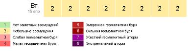 15 апреля значительных возмущений геомагнитного поля Земли не ожидается.