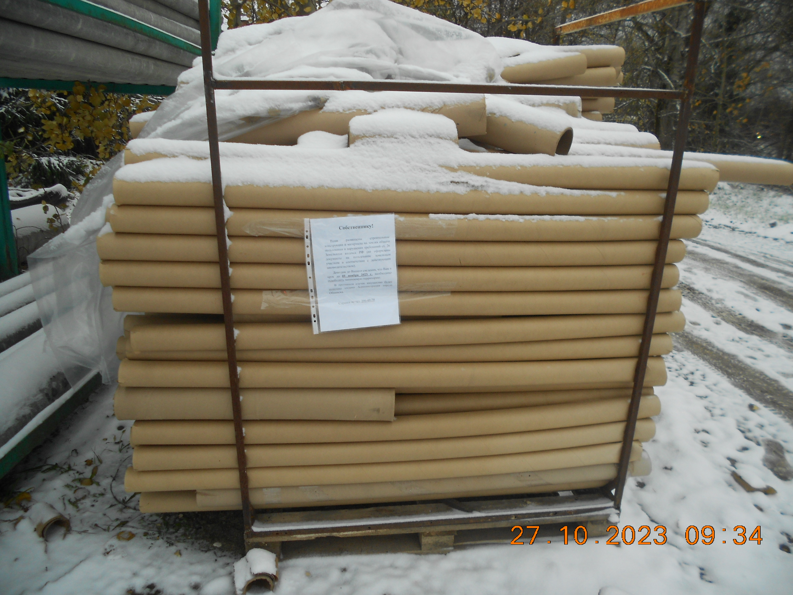 Вами незаконно возведена конструкция в районе дома 1 по ул. Киевская в г. Обнинске на землях общего пользования. Также вдоль Киевского шоссе и в районе дома 71 по ул. Московская размещены колодезные кольца, мешки, сломанные палеты.