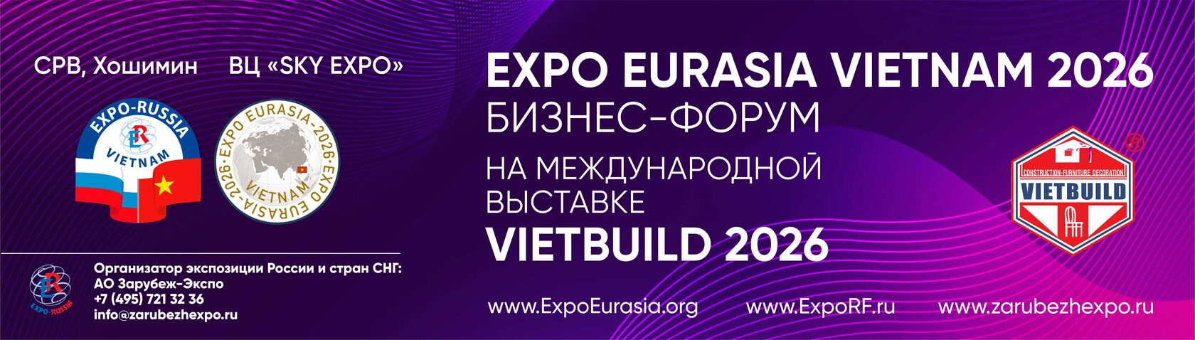 С 24 по 28 июня 2026 года в городе Хошимин (Вьетнам) в ВЦ «Sky Expo» на полях международной выставки VIETBUILD 2026 пройдут VII Международная промышленная выставка «EXPO-EURASIA VIETNAM 2026» и Бизнес-форум.